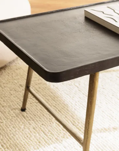 JONAS - Tavolino rettangolare in alluminio con piano nero con gambe dorate