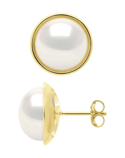 Orecchini in oro giallo e perle coltivate d'acqua dolce Bottoni bianchi naturali