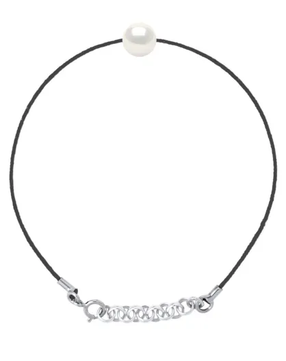 Bracciale rotondo in nylon intrecciato bianco naturale e perle coltivate di Tahiti