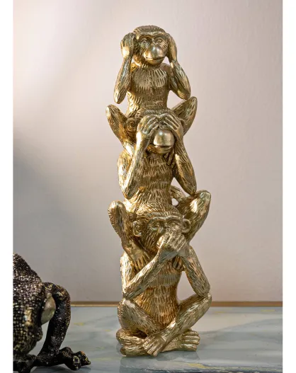 Scultura dorata della torre della scimmia - Ø 10,5x30 cm