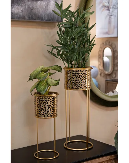 Scultura a foglia con portacandele glam oro/nero - 12x11x36 cm