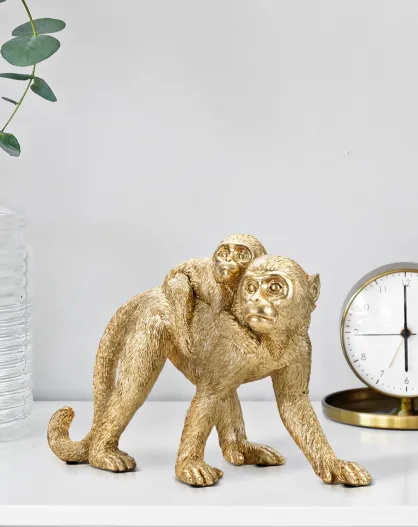 Scultura mamma scimmia dorata - 29,5x11,5x18,5 cm