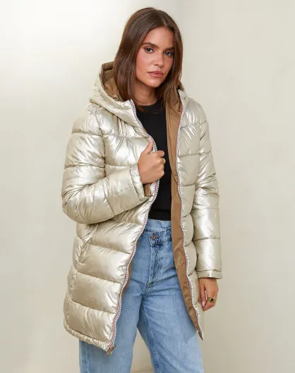 Piumino Vancouver con collo in pelliccia sintetica beige