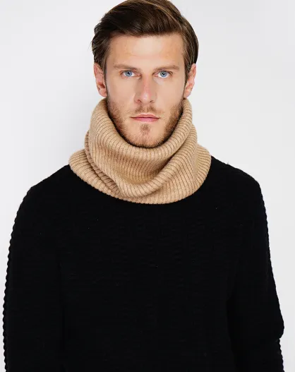 Sciarpa in misto cashmere a costine color cammello - 170x30 cm