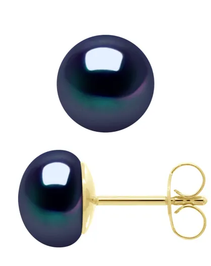 Orecchini in oro giallo e perle coltivate d'acqua dolce Bottoni neri 8-9 mm