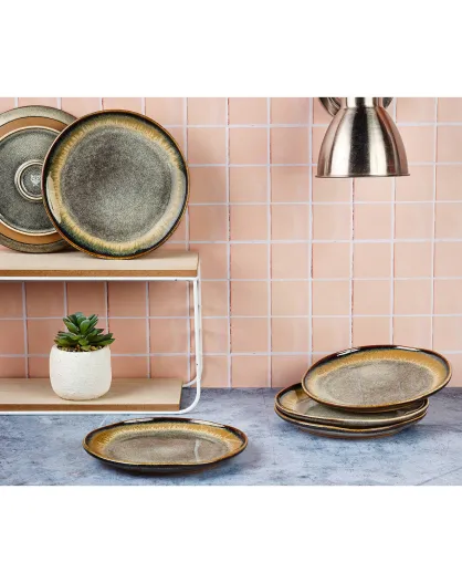 6 piatti in gres kaki/blu Island - D.20,5 cm