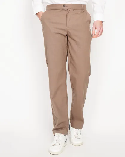 Pantaloni in misto lino marrone Leo