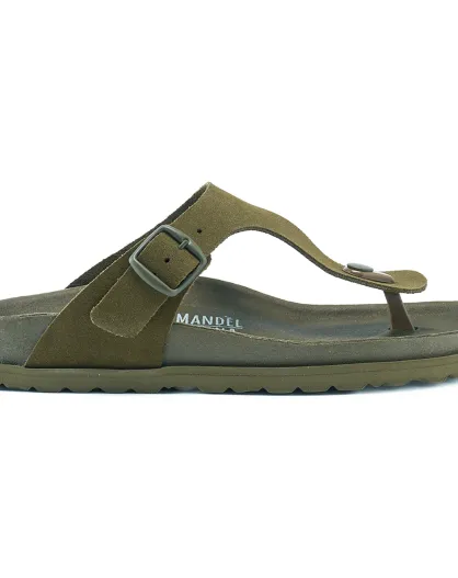 Sandali in pelle con dita in velluto color kaki