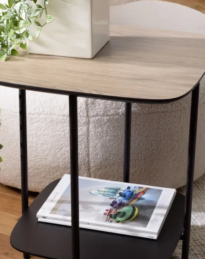 Tavolino rettangolare 50x42cm Legno di pino riciclato e gambe in metallo