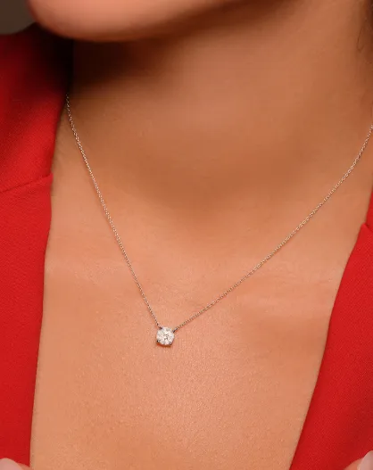 Collana solitaria in oro bianco da 1 kt con delicati diamanti