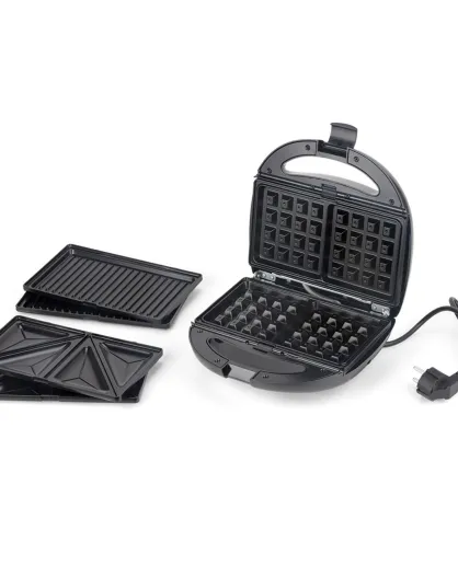 Apparecchio elettrico 3 in 1 (Waffles - Croque Moniser - Grill) nero/argento - 25x24x14,4 cm