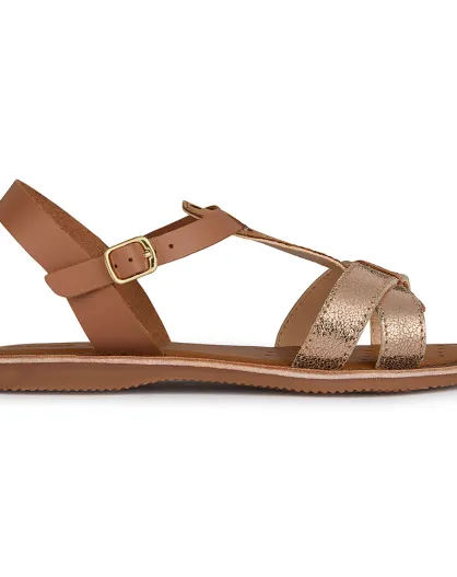 Sandali in pelle color cognac/oro rosa