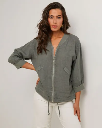 Giacca Louise verde kaki 100% lino