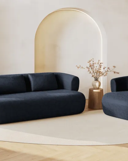 Divano in ciniglia blu scuro Estro a 2 posti - 178x90x73 cm