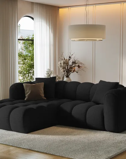Divano angolare sinistro modulare Arden 3 posti nero - 238x190x70 cm