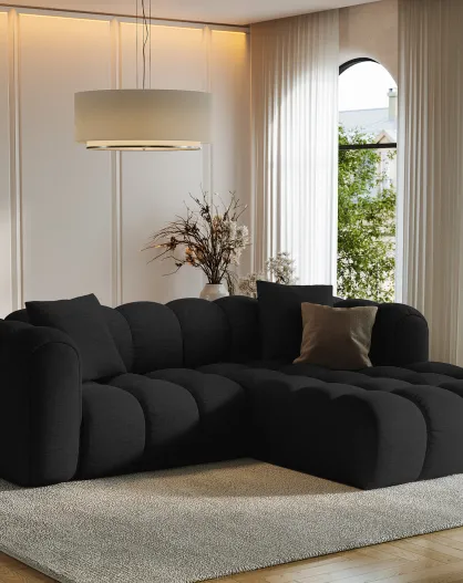 Divano angolare destro Theo nero a 4 posti - 260x170x72 cm