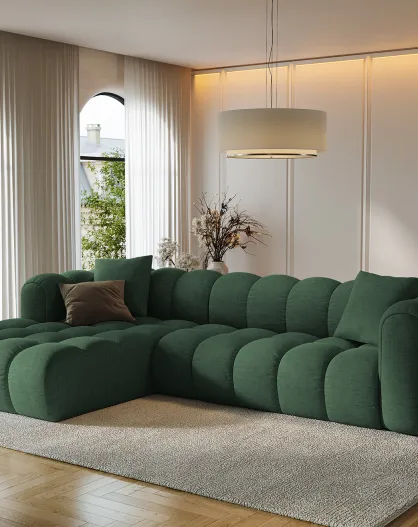 Divano Angolare Sinistro Modulare Lorella 4 Posti Verde Oliva Scuro - 265x145x70 cm