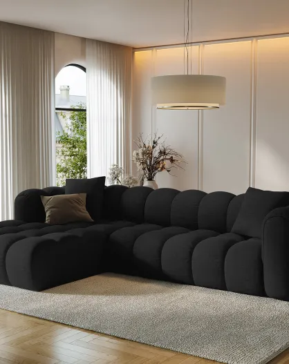Divano angolare sinistro Theo nero a 4 posti - 260x170x72 cm