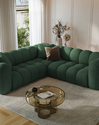 Divano angolare Lyna a 5 posti in velluto verde - 282x282x72 cm