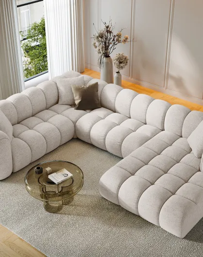 Divano angolare sinistro modulare panoramico beige Arden 6 posti - 330x238x70 cm