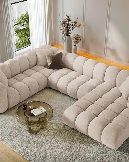 Divano panoramico (lato destro) Velvet Lyna 6 posti beige - 355x225x72 cm