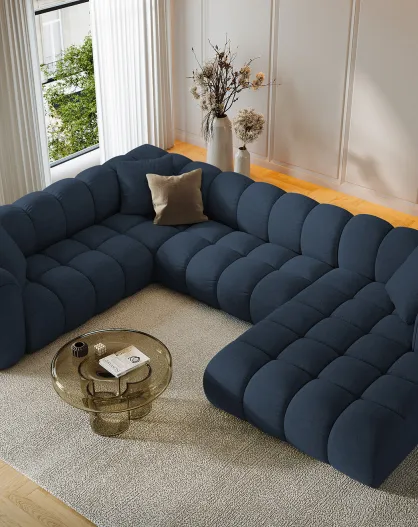 Divano angolare sinistro modulare panoramico blu reale a 6 posti Arden - 330x238x70 cm