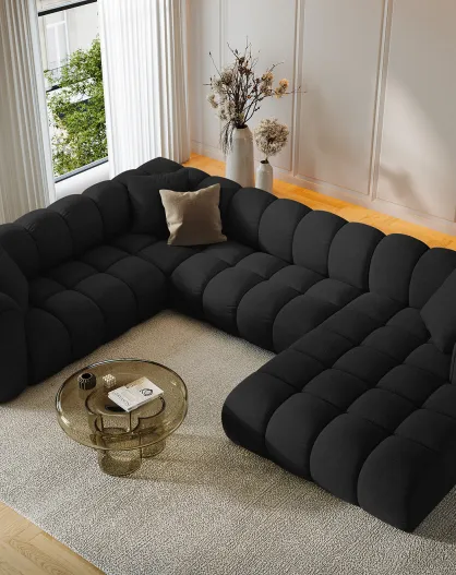 Divano angolare destro modulare panoramico nero Arden a 6 posti - 330x238x70 cm