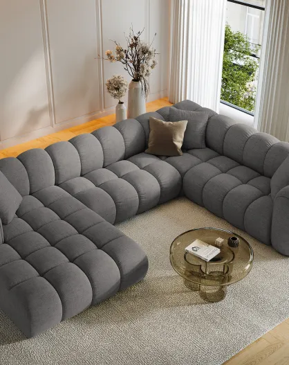 Divano angolare sinistro panoramico modulare Arden 6 posti grigio - 330x238x70 cm