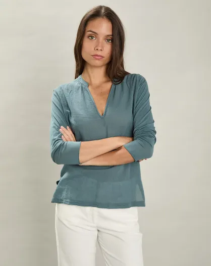 T-shirt 100% lino Qitu Blue