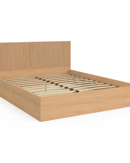 Letto a cassettiera Faustine con base a molle e testiera a doghe in legno - 160x200 cm