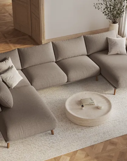 Divano panoramico Margot Cappuccino a 6 posti aperto a destra - 365x235x75 cm