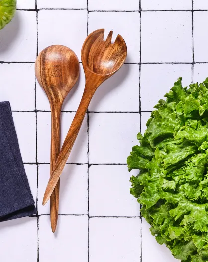 Posate da insalata ROLF in legno di acacia marroni