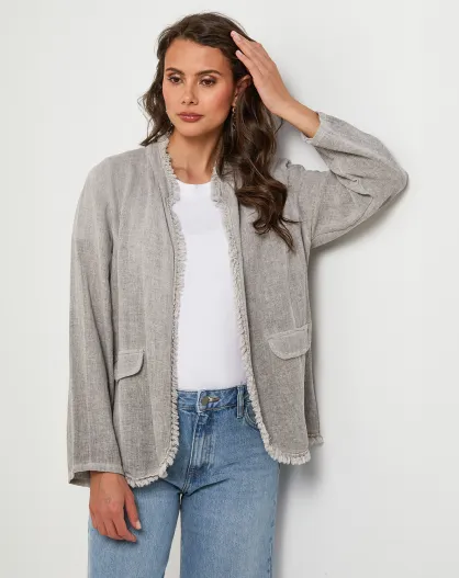 Giacca Manon taupe in lino e cotone