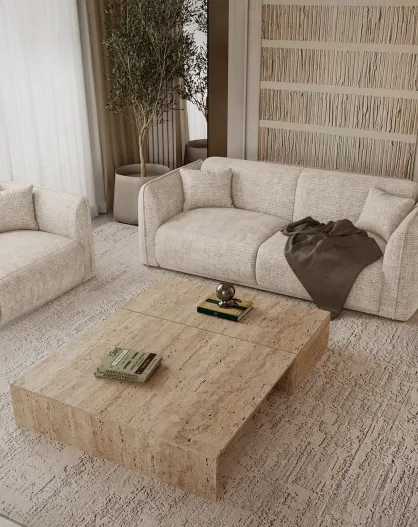 Divano GLENN 3 posti Velluto intrecciato beige - 220x90x74