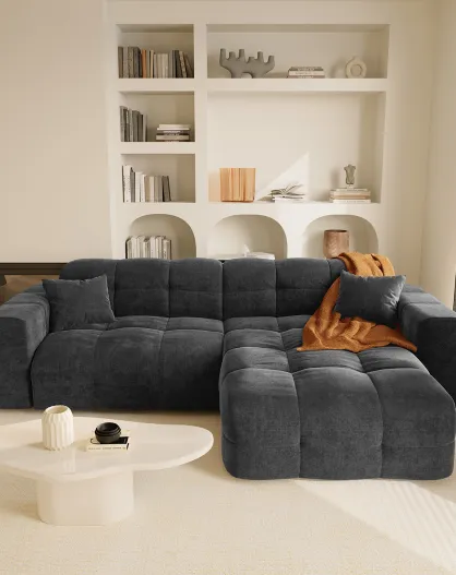 Divano angolare sinistro 280cm ROMY Velluto intrecciato nero - 280x166x70