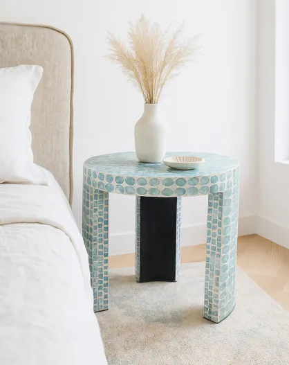 Mobili d'accento in conchiglie capiz blu solna - 50x50x40 cm