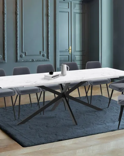 Tavolo da pranzo allungabile Spider effetto marmo bianco/gambe nere - 200/240x90x75,5 cm