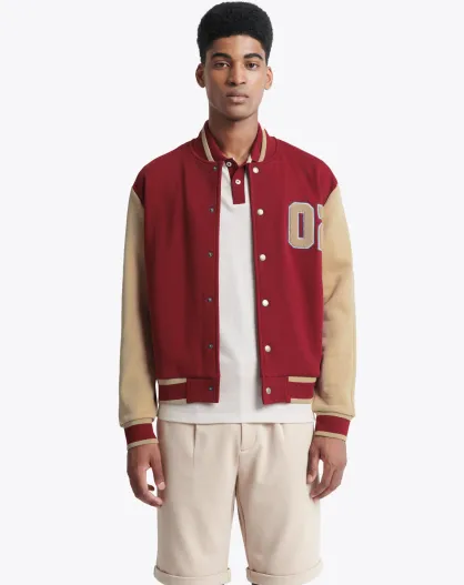 Giacca con colletto in teddy in cotone rosso e ocra americano