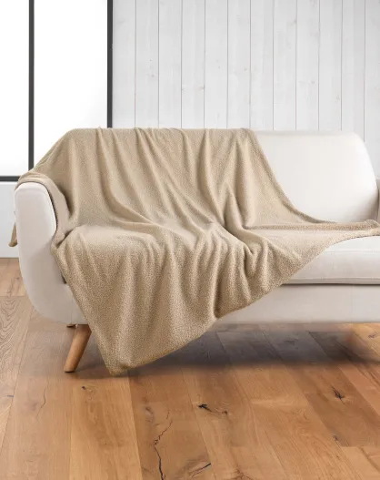Plaid Wooly Beige (125 x 150 cm), tinta unita in bouclé