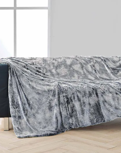 Coperta invernale calda (180 x 220 cm) grigio antartico, pelliccia sintetica