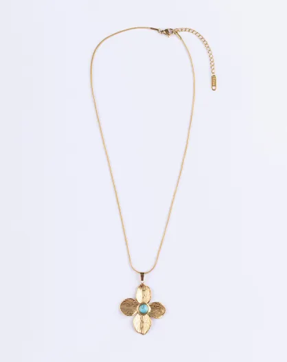 Collana in acciaio placcato in oro giallo e turchese dorato