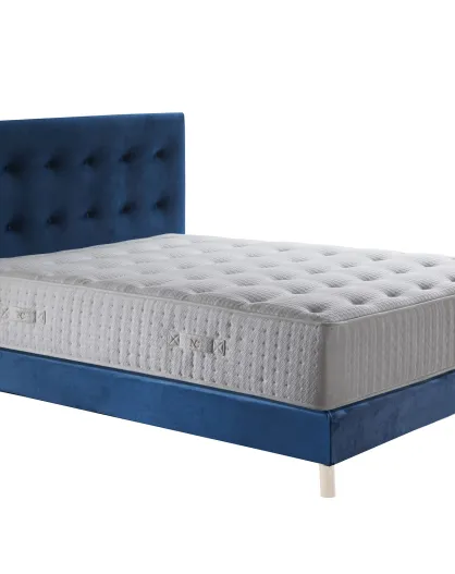 Set materasso a molle insacchettate Hélios + materasso a molle + testiera imbottita blu