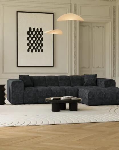 Divano ad angolo retto COVA in velluto goffrato grigio antracite - 290x94x69,5