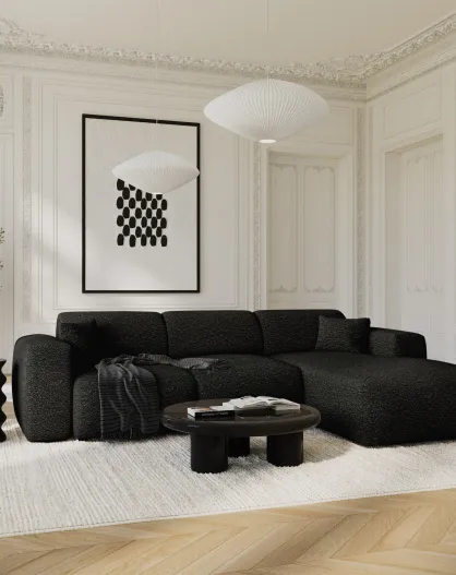 Divano angolare destro trasformabile LIVA Tessuto Looped Antracite scuro - 283x180x73