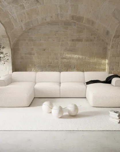 Divano panoramico Cream Boucle Fabric - 363x165x73