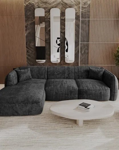 Divano angolare sinistro 280cm ROMY Velluto intrecciato nero - 280x166x70