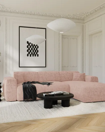 Divano convertibile ad angolo retto LIVA in velluto testurizzato rosa vintage - 283x180x73