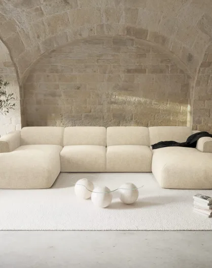 Divano panoramico Beige Boucle Fabric - 363x165x73