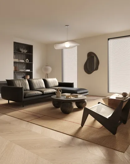 Divano Isak Left Corner in pelle nera - 235x92x85
