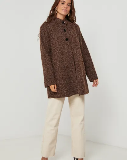 Cappotto a collo alto di media lunghezza Melodie Choco